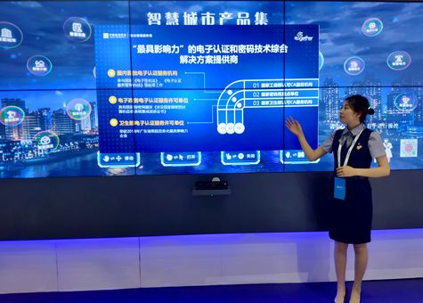 中國通服的綜合講解員進(jìn)行“電子認(rèn)證”的產(chǎn)品講解