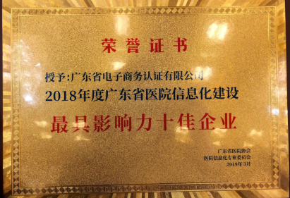 本次展會,網證通同電信、聯通、深信服等大型企業同臺,獲得了大會頒發“2018年度廣東省醫院信息化建設最具影響力十佳企業”的榮譽。