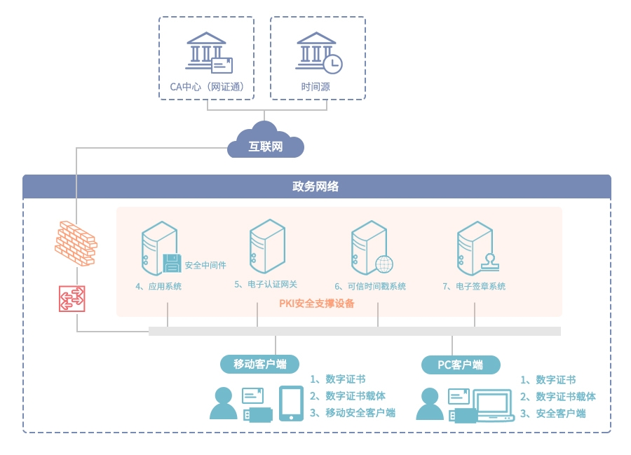 通過引入第三方CA電子認證技術與產品,搭建可靠的電子認證安全支撐體系,為電子政務行政審批系統提供安全可靠的電子認證服務,解決各種身份認證授權問題、信息數據安全和電子公文的法律效力等問題,實現電子政務行政審批全流程無紙化,提高政府對內、對外的服務效率,為“互聯網+政務服務”的實現提供強力踏實的基礎支撐。
